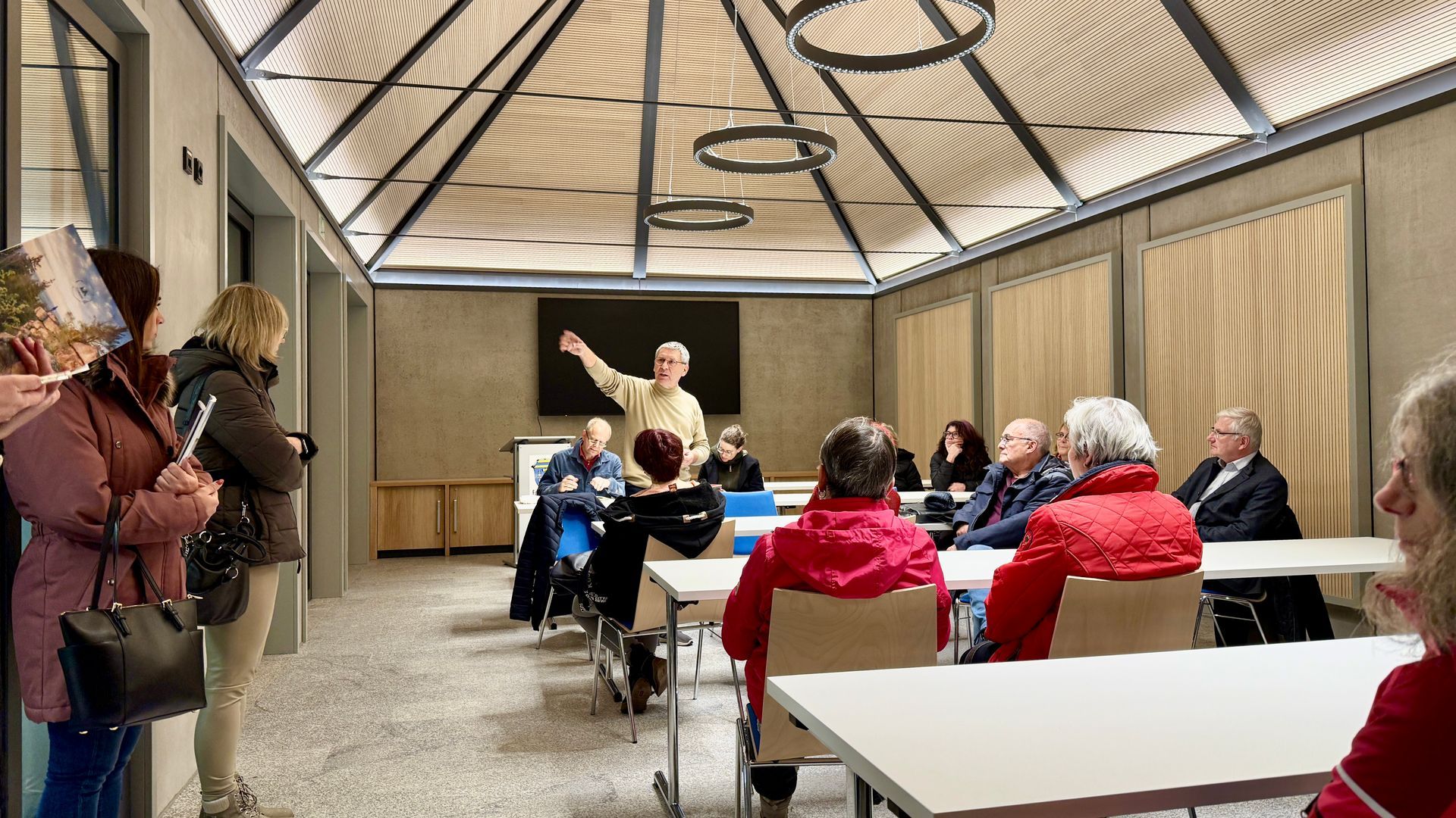 Anschließend erhielten die Teilnehmer eine Führung durch das neue Rathaus, dass erst wenige Tage zuvor Eröffnung feierte. Dabei wurden auch die neue Tourist-Information und der neue Bürgersaal besichtigt und der Imagefilm von Friedenfels präsentiert.